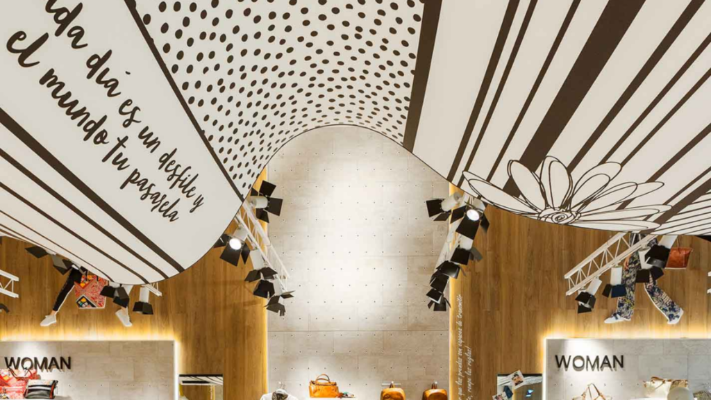 La impresión sobre membranas tensadas permite llevar cualquier imagen, textura o patrón directamente al techo o al revestimiento vertical. Desde mármol o madera realista hasta diseños corporativos o ilustraciones artísticas. Aplicaciones:
